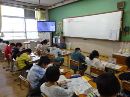 私たちの住む京都府の土地の様子を調べています。今日は地図に色を塗りながら、京都府の地形の特徴を調べました。