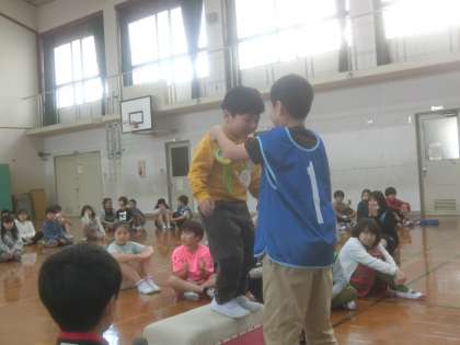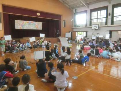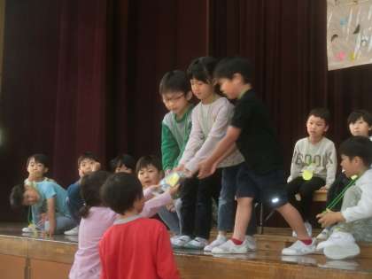 1年生が楽しみにしていた迎える会がありました。ちょっと緊張しながらも、元気いっぱい返事をしてメダルをもらいました。縦割りグループでクイズをしたり、2年生からプレゼントをもらったりと、楽しい時間をすごしました。