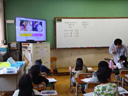 時間と時刻について学習しています。学習用の時計を各自が手元に持って、考えています。生活の中でも、意識して学んでほしい単元です。