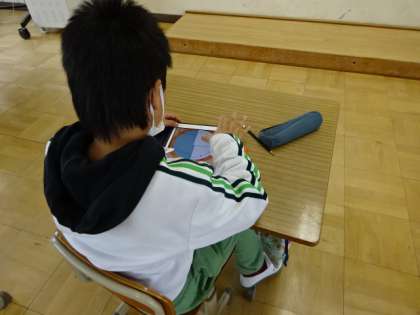 時計を読む学習です。アイパッドを使って時刻を読んでいきます。正解すると拍手がおくられるので、とても集中して取り組んでいました。