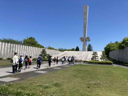 姫路の平和資料館に到着しました。最初に平和集会で、平和を願って言葉を述べました。
