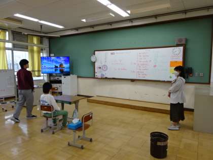 外国語の学習です。今日はALTの先生が来てくれました。一緒に楽しく学習を進めています。