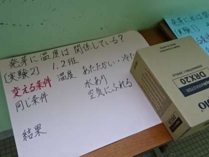5年生は、天気の学習と並行して、種子の発芽についても学習しています。発芽するために必要な条件は何か、実験を通して調べていきます。またどのような変化があるか、気づいたことを教えてくださいね。