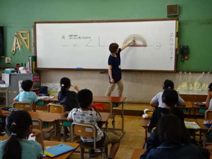 角の大きさについて、これから学習していきます。お手製の角の大きさを調べる道具を使って、角とは何かをみんなで確認しました。