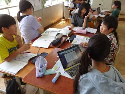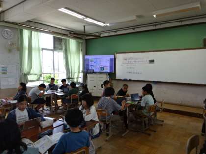 日本の国土と気候の様子について、調べて分かったことをグループで交流しました。タブレットやノートにまとめたことをもとに、お互いに伝えあいました。