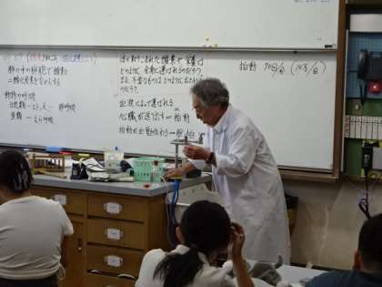 今日は、心臓の果たす役割について調べました。心臓が全身に血液を送り出す様子を、ポンプを使って再現し、体の中の仕組みについて知ることができました。