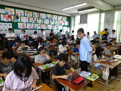 授業研究会を本校で開催し、中学校ブロックの他校の先生方に来ていただきました。5年生の社会の学習を参観していただき、本校の子どもたちが学習に向かう様子をもとに協議会を行いました。たくさんの先生方に見守られる中での学習でしたが、子どもたちは普段通りに学習に向かう姿がありました。