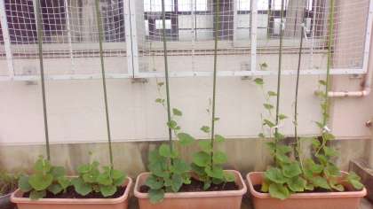 5月からヘチマを種子から育てていました。先週の6月26日に測った時には70cmだったヘチマが、今日見てみると198cmに伸びていて驚きました。