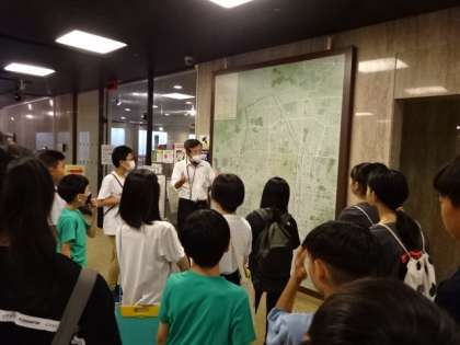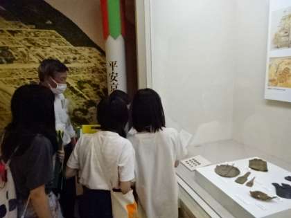 学校近くの京都アスニーにある「平安京創生館」での学習です。平安京を一望できる平安京復元模型や、平安京の暮らしがわかる展示などの見学を通して、教室で学習したことをあらためて深く知ることができました。