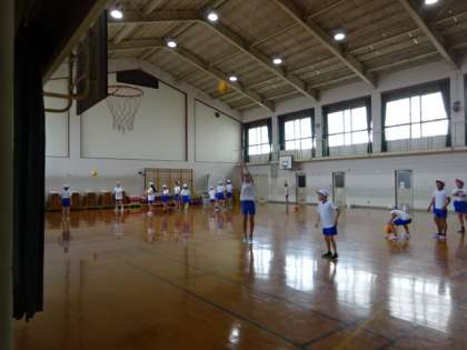 「バスケットボール」の学習です。まだまだ暑さが残る中ですが、パスやシュートの練習をしたり、ゲームをしたりして、体をしっかりと動かしています。