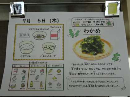 今日の献立は、「麦ごはん・牛乳・プリプリ中華いため・わかめスープ」でした。大人気メニューの一つであるプリプリ中華いため。みんな嬉しそうに味わっていました。今日も美味しい給食、ごちそうさまでした!
