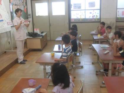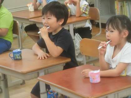 これまで、どのような磨き方をすると、汚れがよく落ちるかと考えたことがなかった子が多かったようで、歯ブラシの向きを変えることに、驚いていました。今日の夜から、丁寧に磨きたいと意気込んでいました。