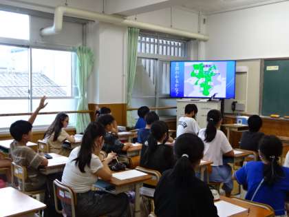 小中連携の取組で、「ふれあい探検 IN 中学校」がありました。本校は西ノ京中学校と朱雀中学校に進学しますが、それぞれの進学先となる中学校に出かけて、生徒会の先輩たちから中学校生活について教えてもらったり、中学校の先生の授業を体験しました。
