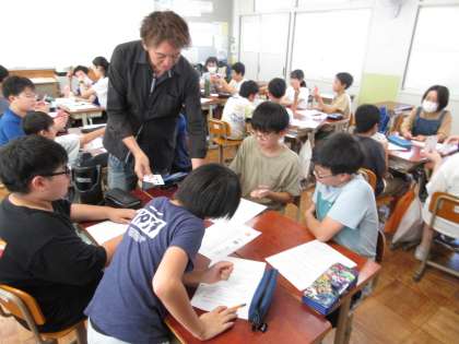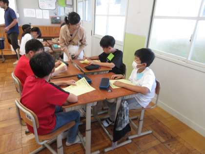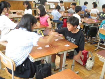 子どもたちから「他の学校の人たちと交流できてよかった。」と普段の学習とは違う、カードゲームや百人一首、NGワードゲームなど教科を通したゲーム形式の学習を楽しめたようでした。教室も3年生の教室で行われ、「机は思ったより高くなかった。」「でも、高くなっている机も何台かあったで。」と、小学校とは違う教室の様子も感じられたようでした。