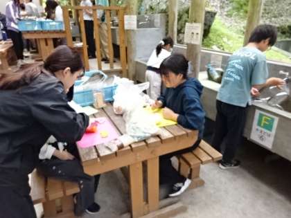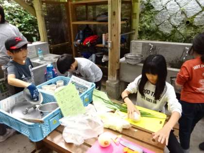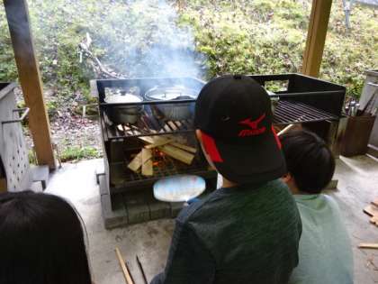 スムーズに火が付いた班もあれば、火がなかなか付かないで苦労した班もありました。でも協力してみんなで炊事を進めていきました。