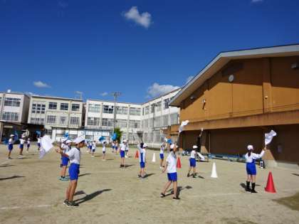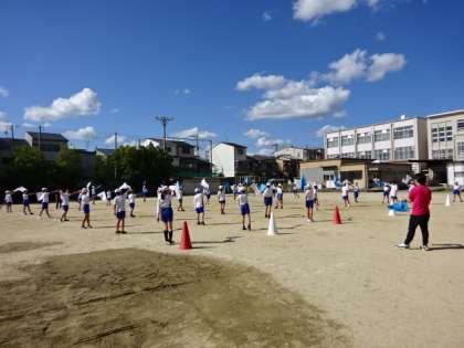 運動場に出てきての練習です。本番も近づいてきて、みんなの息の合った動きも高まってきました。