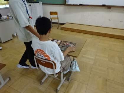 国語の時間、先生と一緒に絵本を声に出して読んでいました。時々小さな声になることもありましたが、頑張って読んでいます。
