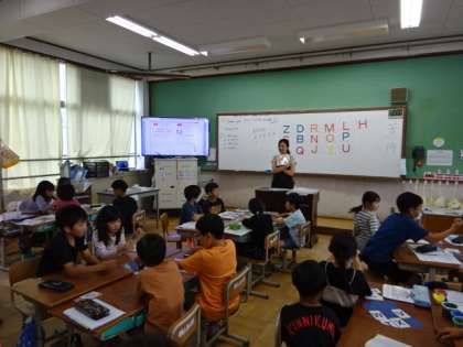 外国語活動の時間の様子です。アルファベットに親しむために、ビンゴゲームをしていましたが、大盛り上がりでした。