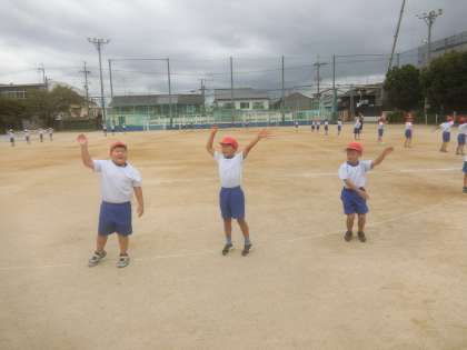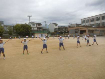 1・2年合同でダンスの練習を頑張っています。今日は、運動場で通して練習しました。自分の場所を覚え、楽しく学習しました。