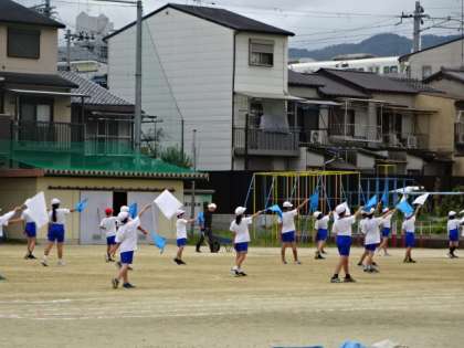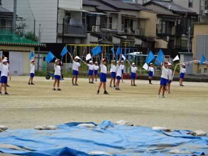 運動会に向けての練習です。高学年らしい美しく、そして迫力のある演技を披露できるように、細かな動きも確認しています。さすがです。