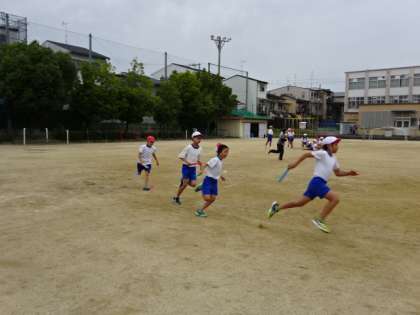 運動会に向けてリレーも練習しています。4年生になると力強さやスピード感も感じられます。本番も全力で走る姿が楽しみです。