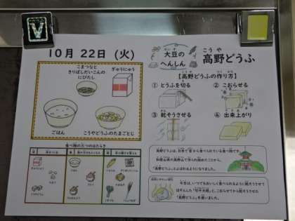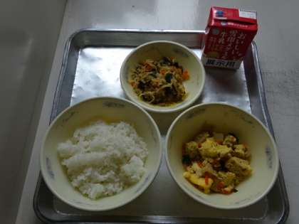 今日の献立は、「ごはん・牛乳・高野どうふの卵とじ・小松菜と切干大根の煮びたし」でした。高野どうふの卵とじは、だしの風味を感じながらいただきました。今日も美味しい給食、ごちそうさまでした!