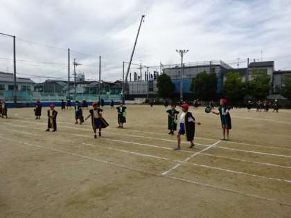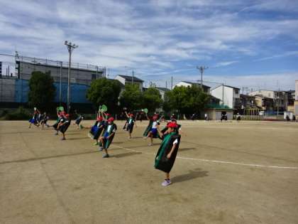 衣装を身に着けて、手には手作り団扇を持って演じる3・4年生。3・4年のたてわりグループで創作した演技の場面も、見どころの一つです。こちらも楽しみです。