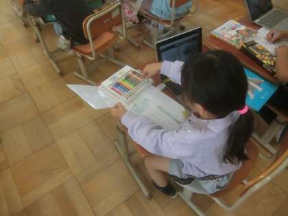 「自動車ずかんをつくろう」の学習をしています。ロイロノートに送られた、たくさんの本の資料のなかから、それぞれの車のしごととつくりを見つけました。