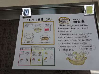 今日の献立は、「玄米ごはん・牛乳・さばのしょうが煮・関東煮」でした。関東煮は「おでん」のこと。おでんが美味しい季節になってきました。今日も美味しい給食、ごちそうさまでした!
