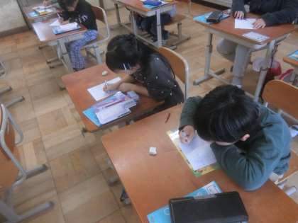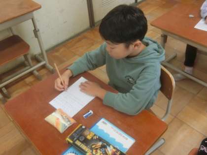 今日の算数は、100までの数を書き出して、表をつくりました。ついに100まで数えられると大喜びの子どもたちは、集中して書いていました。