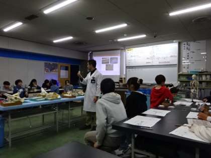 最後には「メガロドン」の歯の化石をもとにして、レプリカを作りました。また、実験の合間には、展示コーナーでの体験もでき、とても有意義な学習となりました。