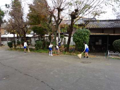 本校は敷地も広く、たくさんの木々もあり、この時期は、落ち葉そうじが大変です。子どもたちも一緒に手伝ってくれています。