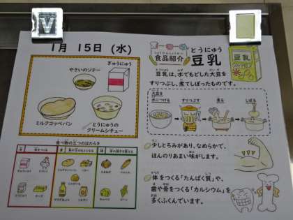 今日の献立は、「ミルクコッペパン・牛乳・豆乳のクリームシチュー・野菜のソテー」でした。シチューは冬の定番メニュー、温まります。今日も美味しい給食、ごちそうさまでした!