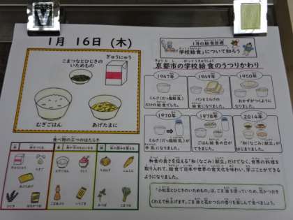 今日の献立は、「麦ごはん・牛乳・あげたま煮・小松菜とひじきのいためもの」でした。1月の給食目標は「学校給食について知ろう」です。給食週間も設定し、日ごろの給食について、いろいろと学んでいきます。今日も美味しい給食、ごちそうさまでした!