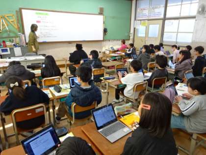 社会の時間、京都府内の特色ある地域について調べていきます。今日は、天橋立についてどんなところかをまずは予想し、調べていきました。