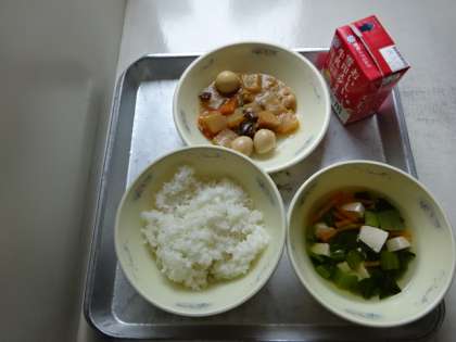 今日の献立は、「ごはん・牛乳・プリプリ中華いため・とうふと青菜のスープ」でした。先日のトンカツに引き続き、今日も子どもたちにとっての大人気メニューのプリプリ中華いためでした。6年生にとっては最後のプリプリ中華いためを味わっていただきました。今日も美味しい給食、ごちそうさまでした!
