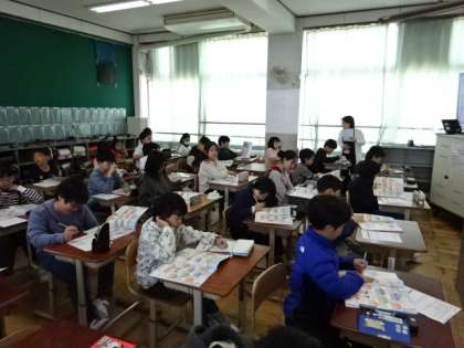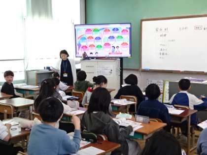 5年生から新しく始まる家庭科の学習。協力指導の先生と一緒に、この一年、学習していきます。