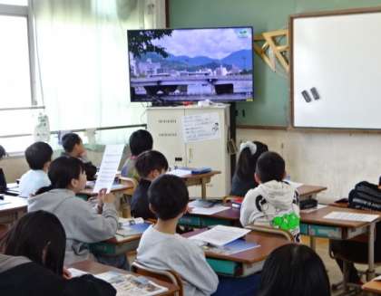 修学旅行では、姫路の平和資料館に行き、戦争と平和について考えていきます。音楽の時間には「折り鶴」の歌を歌い、歌を通して平和への思いや考えを深めていきます。