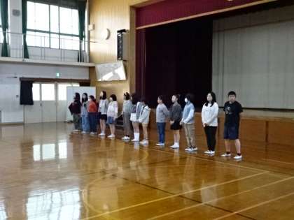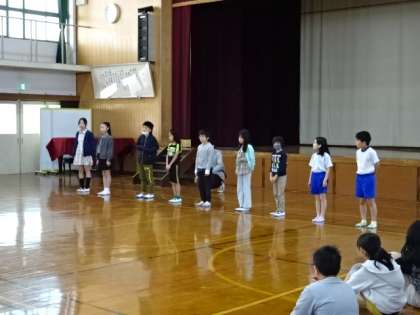 5月2日(金)の児童朝会に向けて、企画委員や代表委員のメンバーが集まり、最後の確認を体育館でしました。全校が集まる会が有意義な会となるように、よろしくお願いします!