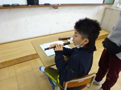 リコーダー演奏に挑戦です。6年生でも、いろいろな曲を演奏できるように挑戦していきます。