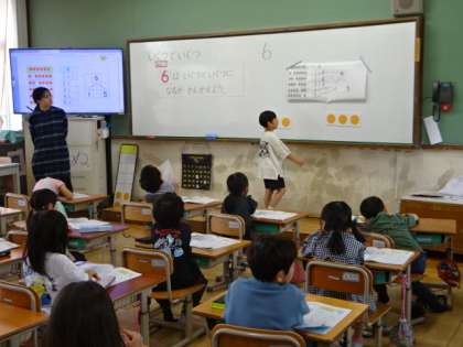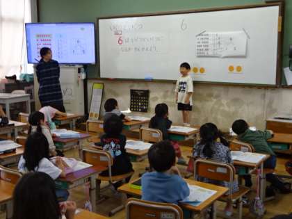 算数の学習の様子です。今日は「6はいくつといくつに分かれるか」考えました。考えたことをみんなの前で発表するのも、緊張しながらですが頑張っています。