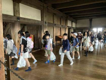 姫路城に到着しました。天守閣を目指して、急な階段を上ります。