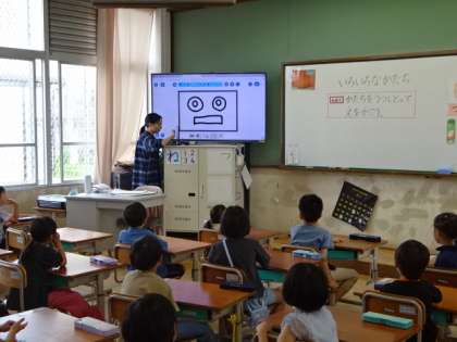 「いろいろなかたち」の学習です。今日は、箱の形をうつしとり、それぞれに想像を膨らませながら絵をかいていきました。