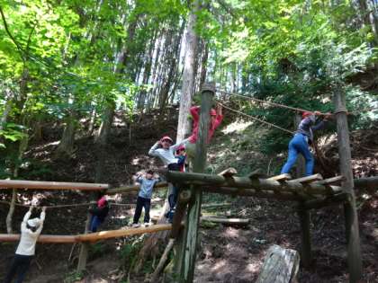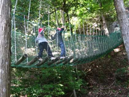 冒険の森アスレチックに挑戦です。自分の力に合わせて挑戦するコースを決めていきます。