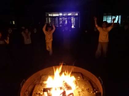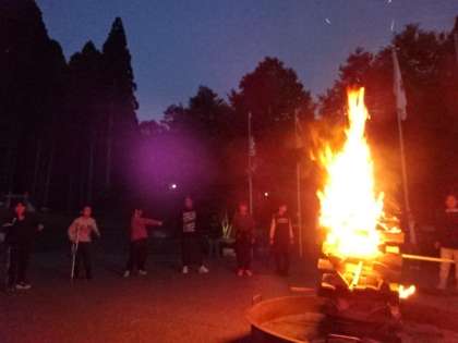 山の家の火の神様からいただいた火を灯して、キャンプファイヤーを行いました。ゲームやダンスで盛り上がり、クラスの仲間意識が高まる機会になりました。
