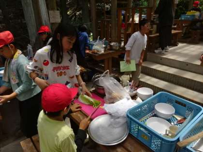 経験を生かして、みんなで協力して調理を進めています。かまども自信をもって薪を組んでいました。そして、ハッピーキャロットがまたしても登場です。みんなで楽しみながら活動を進めています。