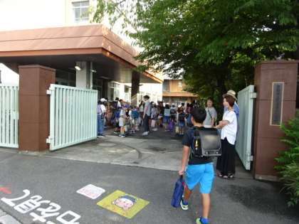 2学期の初日、PTAの方々による「あいさつ運動」の日でした。PTA本部の保護者の方々が正門に来て、あたたかい挨拶で登校してくる子どもたちを出迎えてくださいました。きちんとあいさつをして校門をくぐっていく子どもたちに、気持ちを新たに頑張ろうという意気込みを感じたひと時でした。