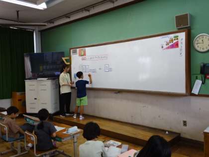 「かさ」の学習です。夏休み明け、2年生も頑張っています。算数では、もうすぐ「かけ算」の学習も始まります。九九の学習を楽しみにしている子もいました。
