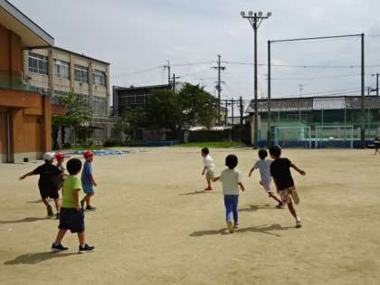 暑い中ですが、元気に外で遊ぶ姿があります。たっぷり汗をかいた後は、水分補給も忘れないようにと声をかけています。