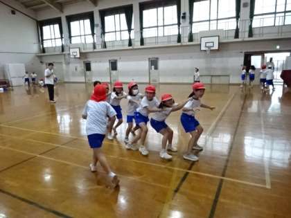 雨のため運動場で体育ができなかったので、「体ほぐしの運動」を行いました。グループでの活動では、お互いに声をかけ合いながら運動を楽しんでいました。